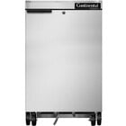 Great for use in small bars with limited space, this Continental Refrigerator BB24N 1 solid door back bar cooler delivers superior performance and plenty of refrigerated storage space for bottled and canned beverages, and even for 1 barrel keg! This 24" rear and side-breathing unit features a black enamel finished exterior to resist the wear and tear of everyday use, and a stainless steel countertop and interior with a reinforced floor to provide additional support for heavy loads of bottles, cans, and kegs.
