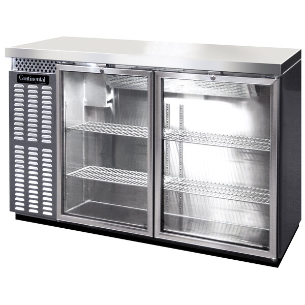 Continental Refrigerator BB50SNSSGD 50" Stainless Steel Shallow Depth Glass Door Back Bar Refrigerator