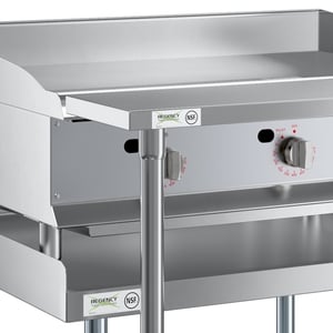Enable the ultimate cooking convenience with this Cooking Performance Group 36GTSSNL 36" thermostatic griddle with Regency equipment stand and stainless steel adjustable work surface.