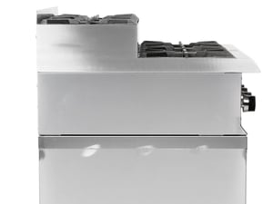 Boasting 6 powerful 30,000 BTU burners with standing pilots for instant ignition, this 4 burner step-up range with storage base gives you the high performance cooking solution you need to prepare sauces, sides, or entrees, while keeping key tools and other supplies close at hand.