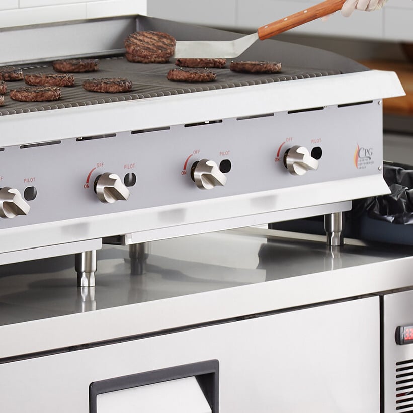 Easily keep up with customer demands for grilled burgers, chicken, steak and more with the Cooking Performance Group CBR60-NG(CPG) 60" gas countertop radiant charbroiler with a refrigerated chef base. This convenient equipment combination streamlines the food prep process by providing refrigerated storage, a charbroiler for cooking, and a place for the charbroiler to sit.