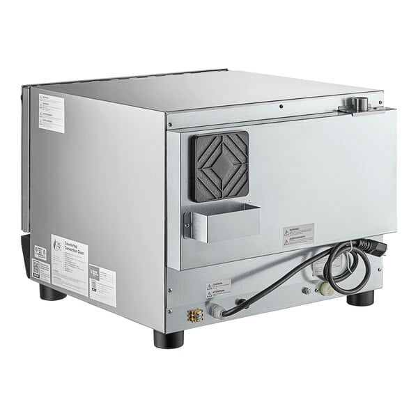 For consistent, quality results, this oven features a button that manually adds a burst of moisture to the cavity while cooking. The 3/4" water connection makes set-up fast and simple. Moisture injection helps product retain its natural moisture, enables better rises, and improves crusts! This 1650-watt oven also includes a bi-directional reversing fan system for uniform airflow in the cavity to heat evenly for efficient and thorough cooking.