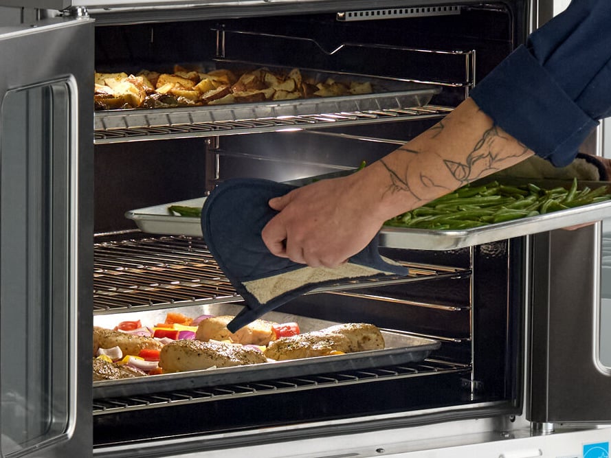 Two independent glass doors feature Bakelite handles to provide comfortable heat resistance and to provide visibility while closed. This gives you the ability to check on dishes without releasing hot air and reducing the chamber temperature.