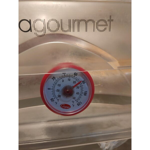 The housing is made of sturdy plastic for safe, long-lasting use. It's also bright red to ensure that it remains highly visible and easy to monitor. This makes it easy for staff to monitor the temperature and maintain a safe refrigerated environment.