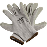 Protect your hands with these Cor-Grip gray polyester / cotton tear resistant gloves with blue crinkle latex palm coating. The 10 gauge fabric offers cut resistance with EN 388 CE protection of 2142 against abrasions, blades, tears, and punctures. This ensures worry-free prep work for your employees as they can be sure the glove will remain durable, comfortable, and fully capable of guarding against accidental tears, even in high volume, fast-paced settings. Perfect for warehouses, construction sites, and handy-man jobs alike, these gloves are sure to boost both safety and productivity. These gloves comply with food handling requirements, making them ideal for use in kitchens or food trucks.