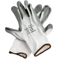 Protect your hands with this Cor-Touch CR+ yellow aramid / steel cut resistant pair of gloves with red foam nitrile palm coating. The 13 gauge fabric offers a high level of cut resistance with EN388 CE protection of 4542 and ANSI level A4 cut protection, meaning that more than 1500 grams of weight is required to cut through the material. This ensures worry-free tasks for your employees as they can be sure the gloves will remain durable, comfortable, and fully capable of guarding against accidental cuts, even in high volume, fast-paced settings. Perfect for warehouses, construction sites, and handy-man jobs alike, this pair of gloves is sure to boost both safety and productivity.