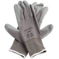 Protect your hands with these Cor-Touch II gray polyester abrasion resistant gloves with black flat nitrile palm coating. The 13 gauge fabric offers cut resistance with EN 388 CE protection of 3121 against abrasions, blades, tears, and punctures. This ensures worry-free prep work for your employees as they can be sure the glove will remain durable, comfortable, and fully capable of guarding against accidental scrapes, even in high volume, fast-paced settings. Perfect for warehouses, construction sites, and handy-man jobs alike, these gloves are sure to boost both safety and productivity.