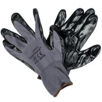 Protect your hands with these Cor-Touch II gray polyester abrasion resistant gloves with black flat nitrile palm coating. The 13 gauge fabric offers cut resistance with EN 388 CE protection of 3121 against abrasions, blades, tears, and punctures. This ensures worry-free prep work for your employees as they can be sure the glove will remain durable, comfortable, and fully capable of guarding against accidental scrapes, even in high volume, fast-paced settings. Perfect for warehouses, construction sites, and handy-man jobs alike, these gloves are sure to boost both safety and productivity.