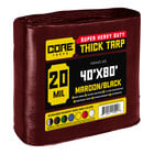 Core Tarps 40' x 80' Maroon / Black Extreme Heavy-Duty Weatherproof 20 Mil Poly Tarp with Reinforced Edges CT70740X80