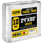 Core Tarps 24' x 50' White Heavy-Duty Weatherproof 10 Mil Poly Tarp with Reinforced Edges