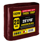 Keep important items protected with this Core Tarps 25' x 45' green / black extreme heavy-duty weatherproof 20 mil poly tarp with reinforced edges. This multi-purpose tarp serves as a protective cover for items such as building materials, vehicles, roofs, and outdoor furniture. It boasts metal grommets every 18" and it has reinforced edges, making it quick and easy to tie down. Thanks to the ultra-strong grommets, your tarp will remain securely in place even when it is windy.