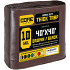 Core Tarps 40' x 40' Brown Heavy-Duty Weatherproof 10 Mil Poly Tarp with Reinforced Edges