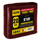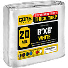 Keep important items protected with this Core Tarps 6' x 8' green / black extreme heavy-duty weatherproof 20 mil poly tarp with reinforced edges. This multi-purpose tarp serves as a protective cover for items such as building materials, vehicles, roofs, and outdoor furniture. It boasts metal grommets every 18" and it has reinforced edges, making it quick and easy to tie down. Thanks to the ultra-strong grommets, your tarp will remain securely in place even when it is windy.