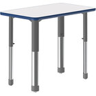 Provide a reliable work surface for a variety of tasks with this Correll 20" x 32" rectangular white finish 25" - 35" adjustable height high-pressure dry-erase top collaborative desk with blue band and gray legs! This table has a durable high-pressure laminate top with a sturdy 1 1/4" thick high-density core so it can stand up to frequent use by students or office staff. The top also has a backer sheet to resist warping over time. It is resistant to wear, scratches, stains, and food, which makes this table a great choice for science or art classes. Plus, the rounded corners ensure that there are no sharp points for students or staff to bump into. Featuring a rectangular shape, fun blue T-Mold design, and creative dry erase board top, this table provides ample room for children's crafts and homework. This table offers superior support capable of holding up to 250 lb. of evenly distributed weight.