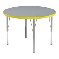Discounted shipping withProvide a reliable work surface for a variety of tasks with this Correll adjustable height activity table! This table has a 1 1/4" thick, two-sided thermal-fused laminate top with a 1 1/8" thick high-density particle board core to stand up to frequent use by students or office staff. It is resistant to wear, scratches, stains, and food, which makes this table a great choice for science or art classes. Plus, the rounded corners ensure that there are no sharp points for students or staff to bump into. This model features silver mist legs and a yellow T-mold.