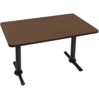 Add an attractive, durable table to your operation with this Correll BTT3048-16 30" x 48" rectangular fusion maple finish standard height high pressure cafe / breakroom table with two T bases. This table has a durable high-pressure laminate top with a sturdy 1 1/4" thick high density core so that it can stand up to frequent use by patrons or employees. The top has a backer sheet to resist warping over time while T-mold edging protects the table's edge from chipping or suffering other damage during use. It is resistant to wear, scratches, stains, and food, which makes this table a great choice for anything from breakrooms to cafes and delis. To ensure a professional look that blends in seamlessly with any environment, this table has a stylish fusion maple finish.