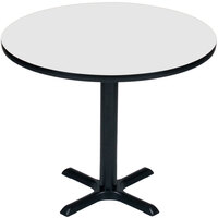 Add an attractive, durable table to your space with this Correll BXT42R-20 42" round mahogany finish / black table height high pressure cafe / breakroom table. This table has a durable high-pressure laminate top with a sturdy 1 1/4" thick high density core so that it can stand up to frequent use by patrons or employees. The top has a backer sheet to resist warping over time while T-mold edging protects the table's edge from chipping or suffering other damage during use. It is resistant to wear, scratches, stains, and food, which makes this table a great choice for anything from breakrooms to cafes and delis.