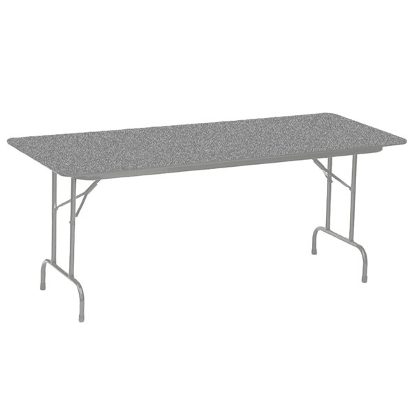 Need a table that eases the process of setup and teardown? Look no further than this Correll CF3672PX15 36" x 72" rectangular gray granite high pressure heavy duty folding table. This table's convenient fold-up design allows you to simply flip the tabletop to the side for incredible space-saving efficiency when both transporting and storing. Then, when ready for use, the legs simply lock back into place with an automatic lock-open mechanism. A gray t-mold covers the table's edge to ensure protection and overall longevity. Plus, the gray granite finish guarantees a professional look and blends in seamlessly with any environment.