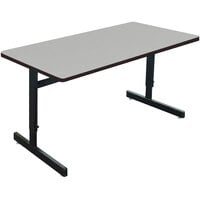 Provide a reliable surface while working on a computer with this Correll CSA2448-06 24" x 48" medium oak finish rectangular adjustable height high pressure top computer table. This table has a durable high pressure laminate top with a sturdy 1 1/4" thick high-density core so it can stand up to frequent use by students or office staff. The top also has a backer sheet to resist warping over time. It is resistant to wear, scratches, stains, and food which makes this table a great choice for busy environments. Plus, the rounded corners ensure that there are no sharp points for students or staff to bump into.