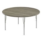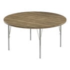 Correll Deluxe 48" Round Colonial Hickory 19"-29" Adjustable Height High-Pressure Laminate Top Activity Table with Silver Legs and Hickory T-Mold