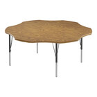 Correll Deluxe 60" Flower Medium Oak 19"-29" Adjustable Height High-Pressure Laminate Top Activity Table with Black Legs and Medium Oak T-Mold