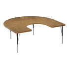 Correll Deluxe 60" x 66" Horseshoe Medium Oak 19"-29" Adjustable Height High-Pressure Laminate Top Activity Table with Black Legs and Medium Oak T-Mold