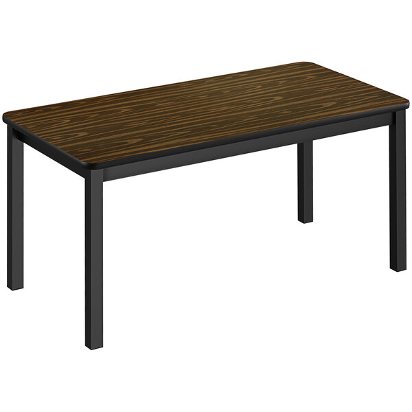 Make your conference room, class room, or library stand out with this Correll LR3048-01 30" x 48" walnut library table! This 29" high table has a durable, economical high-pressure laminate top with a sturdy 1 1/8" thick high-density core and a backer sheet so it can stand up to frequent use by students or office staff. The top is resistant to wear, scratches, burns, stains, and most chemicals, so it makes this table a great choice for science or art classes. Plus, the rounded corners ensure that there are no sharp points for students or staff to bump into.