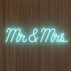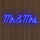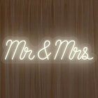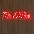 Enhance the romantic ambiance of weddings, anniversaries, or honeymoon suites with this Crazy Neon LED sign. This eye-catching sign is sure to draw attention, allowing you to easily display your heartfelt message in the perfect spot. The design features the words "Mr & Mrs" in a captivating bright warm white color, creating a charming and intimate atmosphere for your guests' special occasions. This striking and modern addition to your space adds a pop of color and personality, making it a must-have for any business looking to make a statement.