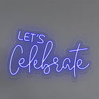 Add a touch of fun and excitement to your special occasions with this Crazy Neon LED sign. This eye-catching sign is sure to draw attention, making it ideal for weddings, anniversaries, parties, and any celebratory event where you want to create a festive atmosphere. The design features the words "Let's Celebrate" in a captivating bright blue color that radiates joy and excitement, encouraging your guests to join in the festivities and make lasting memories. This striking and modern addition to your space adds a pop of color and personality, making it a must-have for any business looking to make a statement.
