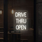 Enhance the ambiance of your establishment with this Crazy Neon LED sign. Perfect for fast-food restaurants and other establishments offering drive-thru services, this eye-catching sign is sure to draw attention and create a vibrant atmosphere. The design features the words "Drive Thru Open" in a captivating bright red color. This striking and modern addition to your space adds a pop of color and personality, making it a must-have for any business looking to make a statement.