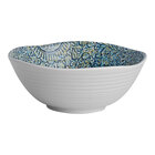 Elevate your tabletop presentation with this Creations from Steelite International Solano 12.75 oz. melamine azure bowl. Showcasing a deep blue hue with colorful speckled accents and intricate flourishes, this bowl provides a stunning backdrop for serving soups, side dishes, or small salads. Its ornate pattern exudes depth and sophistication, making it a distinctive addition to any tabletop.