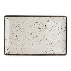 Combine the sophisticated appearance of ceramic pieces with the versatility of melamine using this Creations Urban from Steelite International 12" x 7 1/2" snow melamine rectangular tray! Boasting a durable, easy-to-clean melamine construction, this tray provides reliable performance even in busy establishments. It features a sleek, natural snowy hue accented with scattered flecks and a bold black rim, giving it a refined and memorable aesthetic.