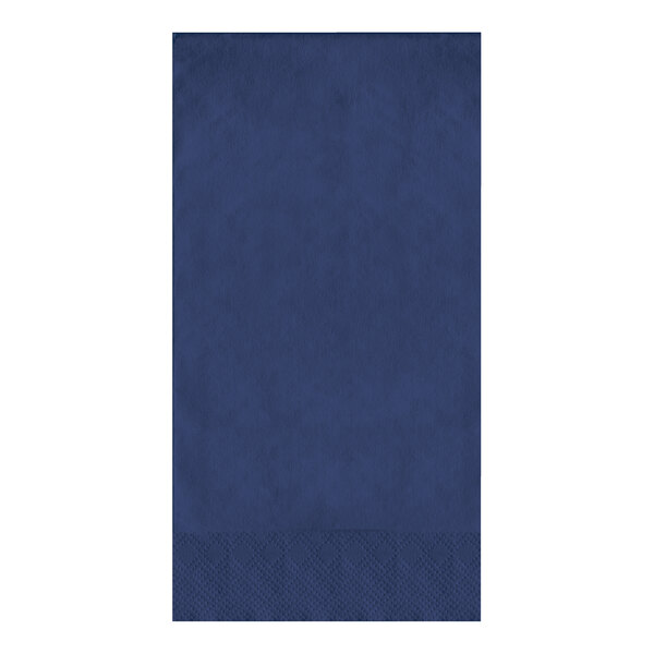 Dress up your next big event with this Creative Converting navy blue guest towel / buffet napkin. This buffet napkin is a cost-efficient alternative to linen napkins. Its navy color will enhance table settings and make them more visually appealing. Additionally, this napkin can be conveniently placed in restrooms, providing your guests with a way to dry off their clean hands.