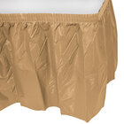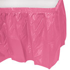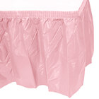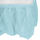Made of durable plastic, this table skirt will repel water and other liquids, making it an essential choice for everything from wedding receptions and birthday parties to catered events and banquets. Featuring an adhesive strip, this skirt is easy to apply to tables, allowing you to dress up your event in minutes. Once the festivities are over, thanks to this table skirt's disposability, cleanup is easy and convenient.