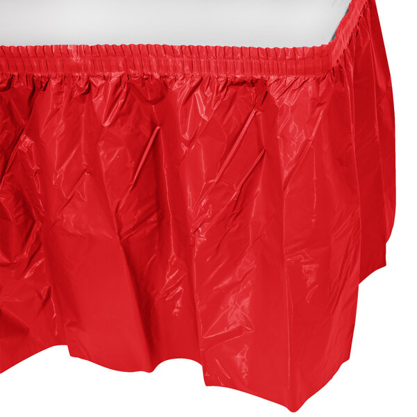 Elevate your event's atmosphere with this Creative Converting plastic table skirt that gives any setting a professional, polished look. The Classic Red adds a vibrant splash of color to your event and serves as a stunning accent to your existing decor, ensuring your celebration space looks cohesive and festive. Plus, this skirt can be easily mixed and matched with other unique colors (sold separately) to match your event's theme.