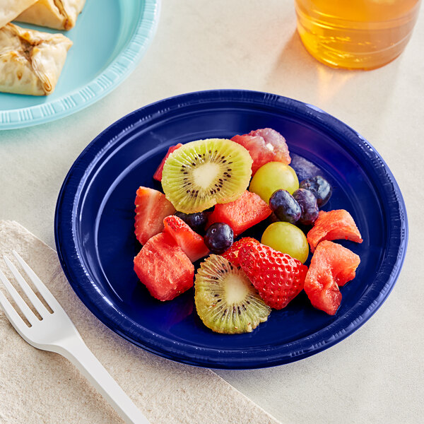 Add a splash of color to your next party with this Creative Converting 28113711 7" navy blue plastic plate!