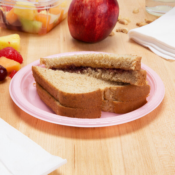 "The pink plastic plate is a good buy for any party. It feels really durable and is of a good quality. It defenitely adds a splash of color to any table setting."