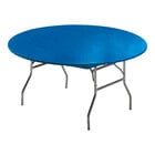 Create a modern look for your next picnic or party with this Creative Converting 37200 Stay Put 60" round white plastic table cover. Featuring elasticized edges and adhesive strip backing, this table cover is specifically designed to prevent movement caused by wind or people getting up from the table, so plates, cups, and other tabletop items remain safely upright and secure. It comfortably fits 5' round tables with a 2 1/2" edge.