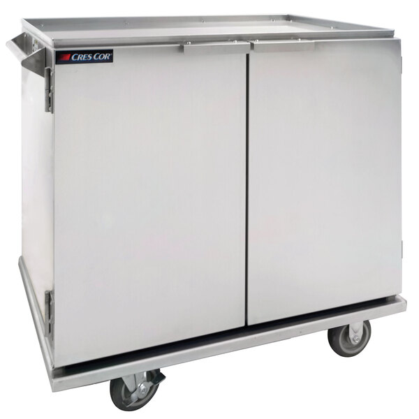 Make sure your food stays hot by adding this Cres Cor 101-172A enclosed in-suite service cart to your food transportation system. Designed to be heated by (4) 7 oz. standard chafing fuel canisters, this cart is great for those times when you need to transport food, serving equipment, paper supplies, and more at the same time. Since it has an enclosed base, three shelves, and a 1" rim around the top, it can handle many different chores.
