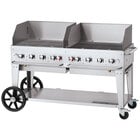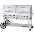 Cook high-quality grilled food at your next event with the Crown Verity CV-MCB-60-SI-BULK-RDP liquid propane 60" mobile outdoor grill with single gas connection, bulk tank capacity, and double roll dome package! Whether you're catering with it or hosting a big event at your hotel, this high-performance, stainless steel grill will withstand frequent usage while delivering excellent results. This grill utilizes a single-gas inlet, and it's adapted for bulk propane tanks to give you hours of reliable performance. It boasts eight burners placed every 5 3/4" to ensure the most even heat pattern possible, and it produces up to 129,000 BTUH. It heats to cooking temperature within five minutes, which means that you can unload the grill, set your prep space up, and get right to work with little wasted time.