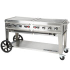 This Crown Verity RCB-60RDP-SI-LP 60" Pro series outdoor rental grill comes packed with everything you need to begin effectively grilling ribs, burgers, hot dogs, and chicken! Designed with frequent transportation in mind, this grill features handles on each end and double crash bars along the front to protect the controls from damage, making this unit an excellent choice for rental applications. It comes with a single gas connection (gas hose sold separately) that allows operators who already have a centralized propane tank to make good use of it without being forced to setup the grilling station directly nearby.