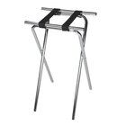 Ensure your staff has a solid foundation to rest trays of food with this CSL 1053C Deluxe 31" chrome steel tray stand with black straps. This tray stand is designed with superior strength thanks to a sturdy rivet-hinge construction that makes it ideal for holding heavy loads. The 2 1/4" wide washable black straps provide added support beneath heavy trays, while ensuring a bold contrast against the contemporary chrome finish.