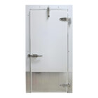 Provide environmental control in your commercial kitchen with the Curtron 36" x 84" cold storage infitting single swinging cooler door. Designed for convenience and durability, this infitting cooler door is constructed with embossed white galvalume steel that provides an impressive R-value of 28, ensuring optimal insulation and temperature control for cooler use. The thermally neutral fiberglass reinforced pultrusion (FRP) framework and non-CFC foamed-in-place polyurethane core further enhance the door's ability to maintain consistent cold storage conditions. This door has a header-mounted closer and swings open to the right with a left-side handle.