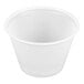 Easily provide your guests with their favorite condiments with this Conex Complements souffle cup. It's an ideal addition to any food truck, kiosk, convenience store, or restaurant take-out service. While its tapered sides make it easy to hold, its versatile design allows you to serve individual portions of salad dressings, sauces, and salsas. Plus, its clear design ensures fast product identification for both your staff members and customers.