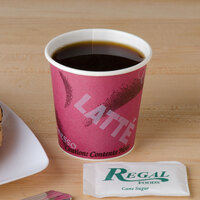 This cup has a stylish cafe-inspired design that's decorated with fun coffee lingo as well as coffee cups. This fun design is sure to complement the color scheme and atmosphere of your business.