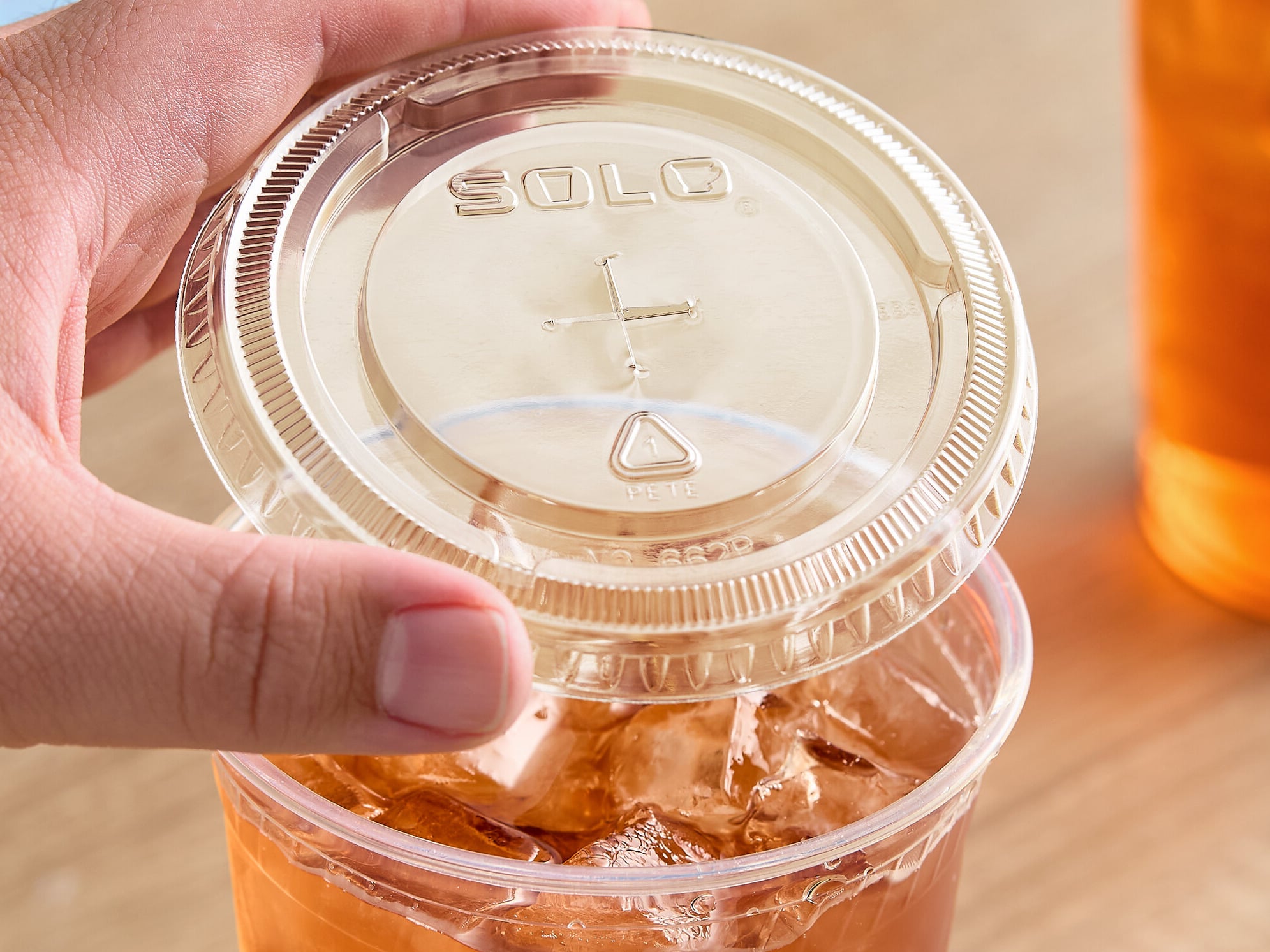 Made of crack-resistant PET plastic, this lid ensures quality, single-service use.