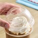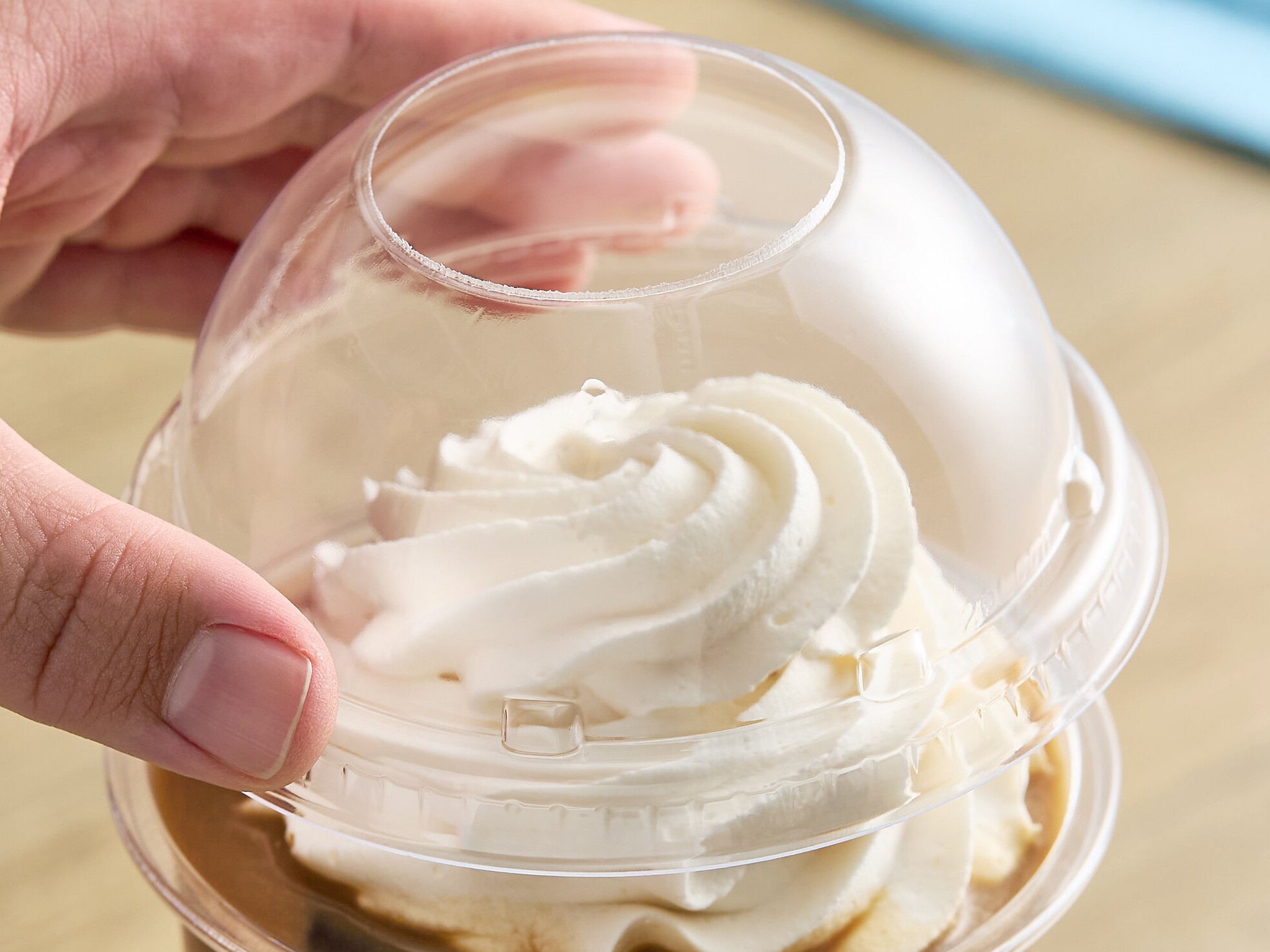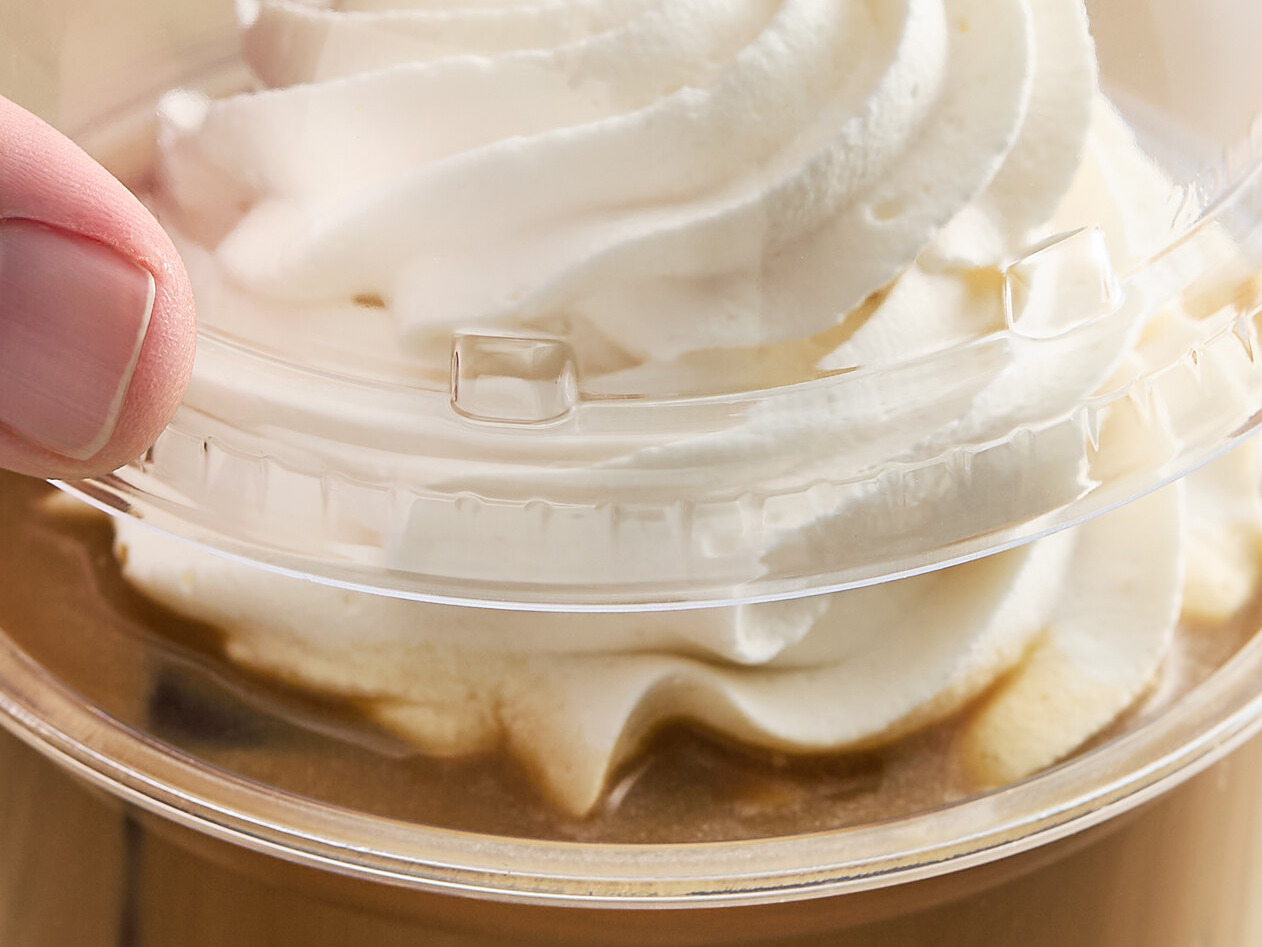 The lid's high dome design allows for a greater capacity as you top off frozen beverages with whipped cream or fill each cup or bowl to capacity.