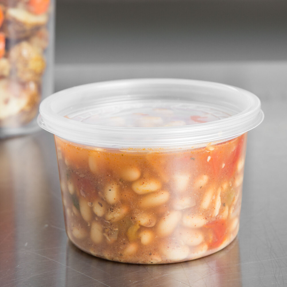 This 16 oz. plastic deli container is perfect for storing and selling a variety of foods, from pasta salad to soup, and for your convenience, one lid size (sold separately) fits several compatible containers.