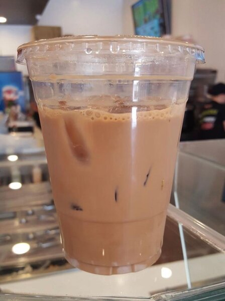 Mix 2 oz. of iced coffee concentrate with 8 oz. of milk or dairy alternative and pour over ice.