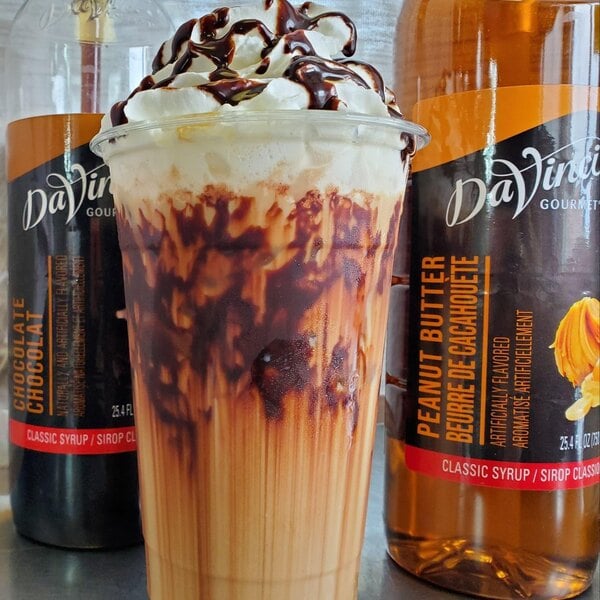 This DaVinci Gourmet sugar-free chocolate flavoring syrup allows your busy baristas to quickly and easily serve up delicious hot, cold, or blended drinks with irresistible flavor without the sugar content or calories! This syrup is sweetened with sugar-free, no-calorie Splenda brand sweetener to complement your beverages without overpowering them with too much sweetness. It is specially formulated to resist curdling in milk and hold up well under heat, making it the perfect choice for espresso-based drinks, coffee, and lattes. Use this syrup to create chocolate frappes, chocolate dessert martinis, or creamy milkshakes. It can even be used for drizzling atop your cheesecakes and frozen yogurt for the perfect finishing touch or as an ingredient in a wide array of baked goods! Each 750 mL bottle yields (25) 1 fl. oz. servings for a total of 300 servings per case.